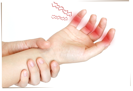 初期の症状としては1つもしくは少数の関節の痛みや腫れ、手のこわばりなどから発症し、次第に左右の同じ関節や他の関節にも痛みや腫れなどが広がっていきます。
